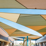 Membrane Geometry and Fabrication: Sailcloth shade triangle components are fabricated with intentional curvature to maintain consistent membrane tension. Elevation offsets are incorporated to promote effective drainage and prevent water accumulation. Structural shade planning ensures that each triangle shade functions cohesively within the surrounding architectural environment while maintaining long-term performance under wind and sun exposure.